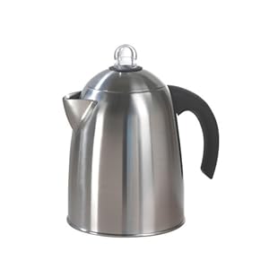 Make better tasting, more flavorful coffee with Fresco’s Stainless Steel Coffee Percolator. The percolator is constructed of stainless steel. Also features a stainless steel filter and components so this percolator is corrosion resistant, easy to clean and dishwasher safe. Offers a transparent lid knob, which allows the user to see when the brewing cycle is complete. Fresco’s Percolator has an easy to hold, cool touch handle for added safety. Contemporary design. Easy pour spout. 12 cup capacity.